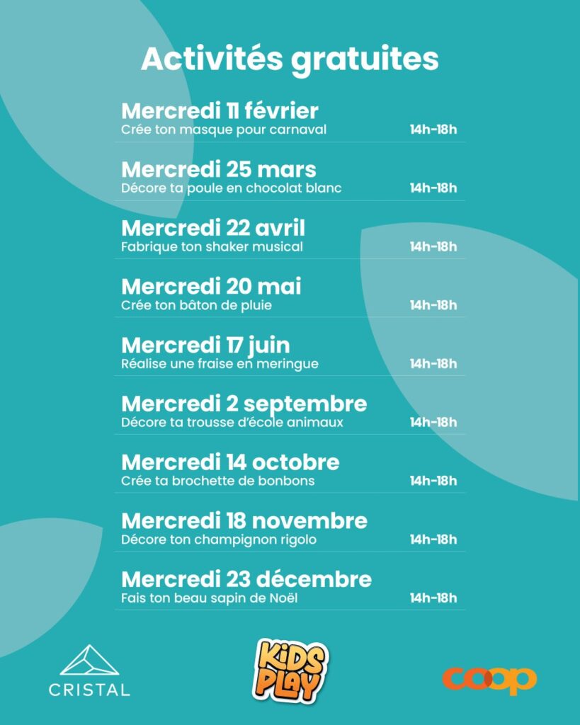 Calendrier des activités gratuites